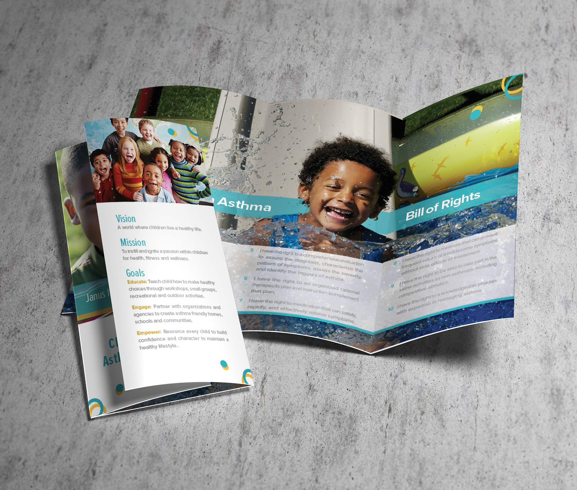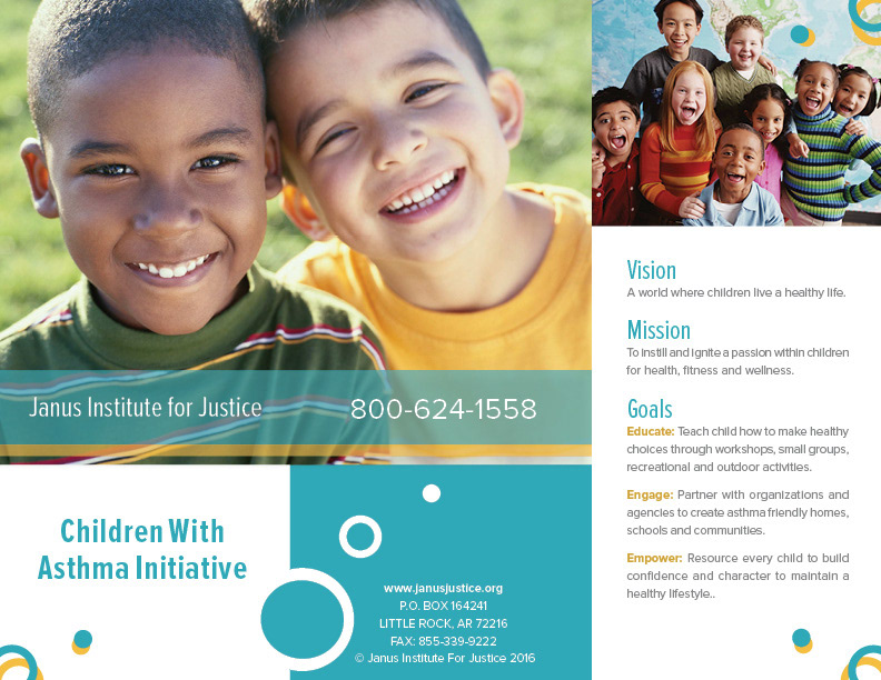 Double-sided try fold flyer informing the local community about services available for low-income minorities.
