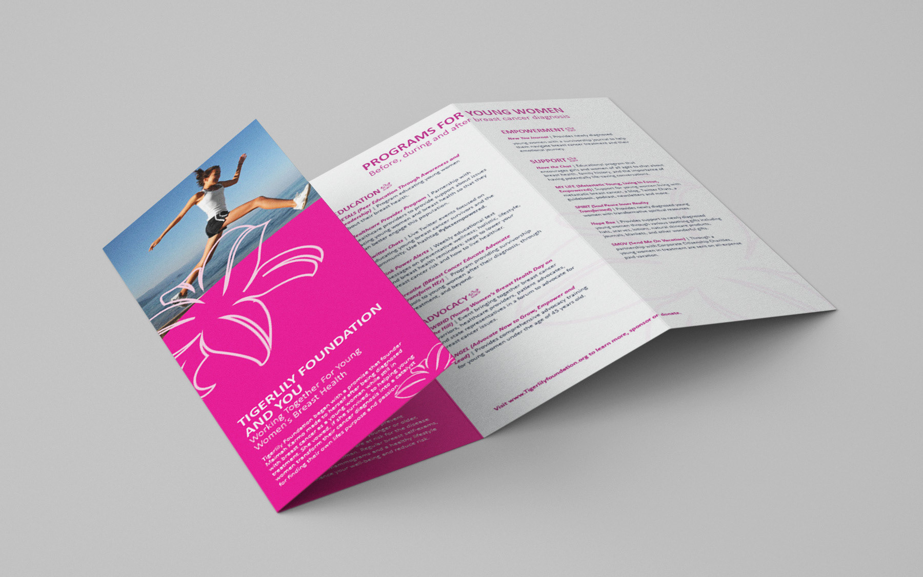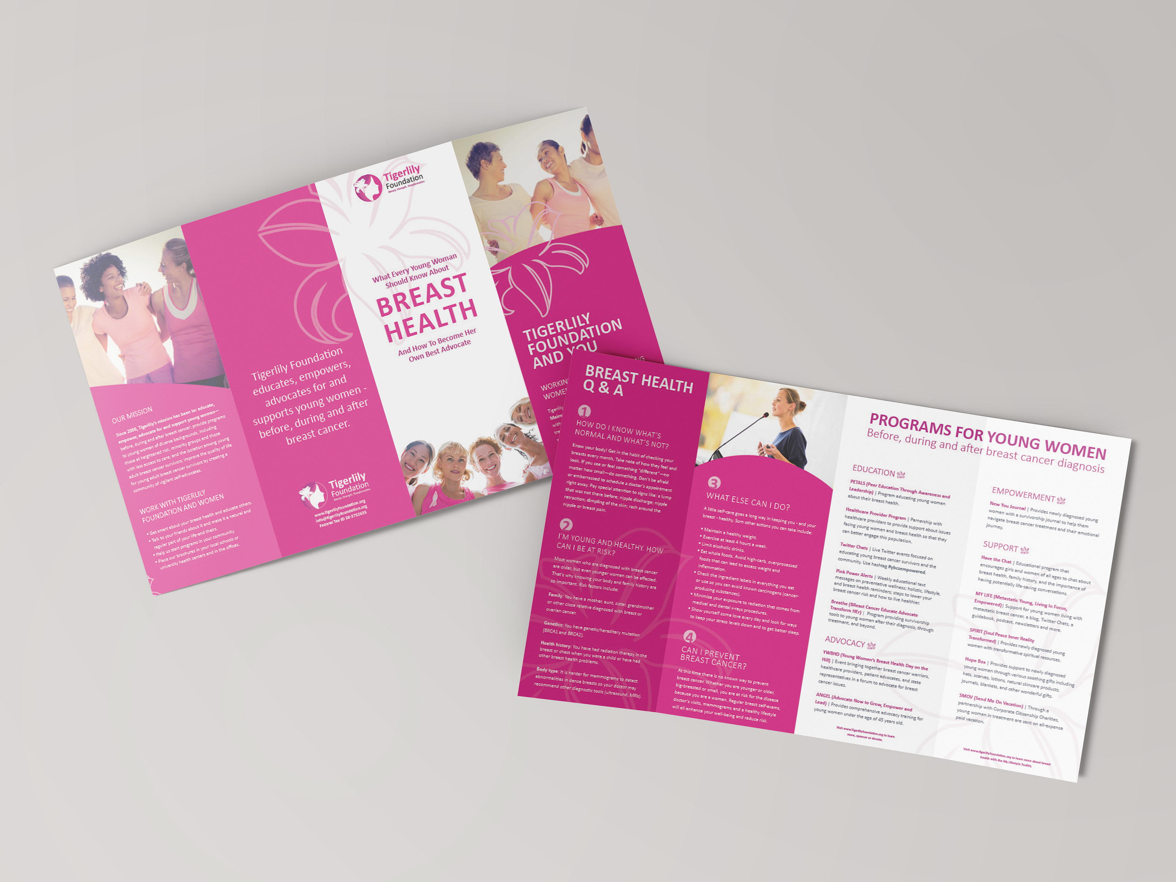 Informative Gate fold brochure used to educate and empower women about breast cancer (Contracted through Thomahwares Creative Story Telling Agency).